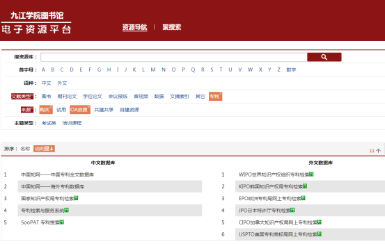 图书馆已有专利数据库及开放获取数据库列表如下: