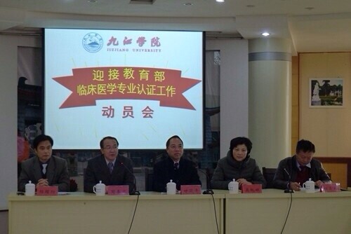 1月8日上午,学校在主校区一号会议组织召开了临床专业论证工作动员会,校长甘筱青、副校长吴桃娥、陶春元、杨焱林、杨耀防,教务处等各相关处室负责人,公共课及相关课程授课单位负责人,医学部及医学各学院院长、书记、教学副院长、教务科长、学生科长、团委书记及基础医学院、临床医学院全部教研室主任,九江学院附属171医院、九江学院附属景德镇医院、九江市一医院、三医院、九江市妇幼保健院科教办负责人,临床医学专业认证工作领导小组成员,临床医学专业学生代表等80余人参加动员会,会议由陶春元副校长主持。