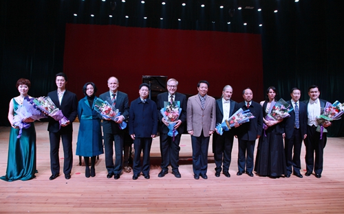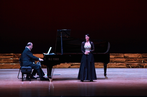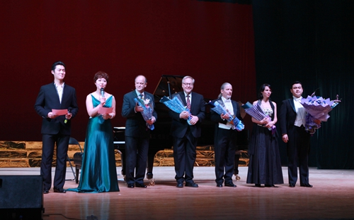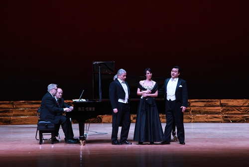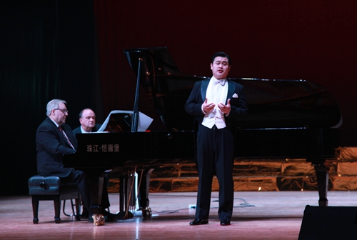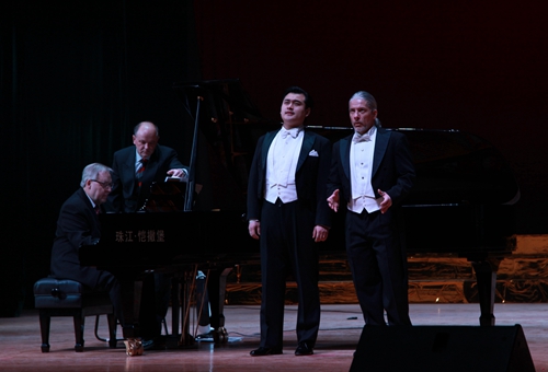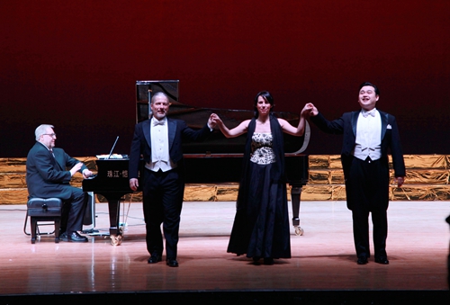 最后,在罗兰·普洛尔先生钢琴伴奏下,三位歌唱家一起演唱了在全世界广为流行的、也被世界著名歌唱家斯泰方诺、帕瓦罗蒂和卡鲁索演唱过的意大利民歌“我的太阳”,中文歌词:多么辉煌那灿烂的阳光,暴风雨过去后天空多晴朗,清新的空气令人心仪神旷……仿佛太阳灿烂辉煌,她的眼睛永远是我心中的最美。