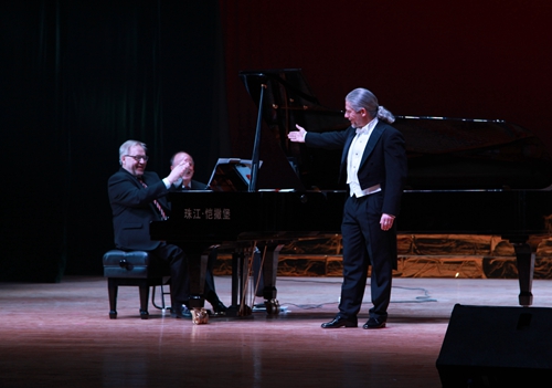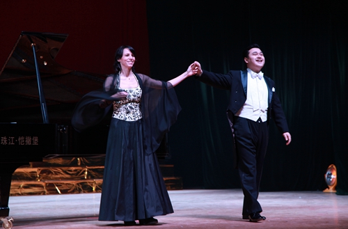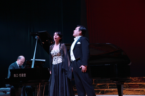 之后,熊柯嘉博士与两位德国籍歌唱家又独唱,或重唱,抑或三重唱了许多世界“歌剧经典”作品,其中有:莫扎特的歌剧《魔笛》中帕帕基诺与帕米娜的男女两重唱“在心中萌发爱情的男人”、歌剧《女人心》中费奥迪莉姬,费朗多重唱“过不了多久”;法国作曲家乔治·比才的世界上演率最高的歌剧《卡门》中唐豪塞尔咏叹调“花之歌”、歌剧《采珠人》中纳迪尔,簇尔佳尔二重唱“在神圣的殿堂”;意大利歌剧作曲家吉亚卡摩·普契尼的歌剧《艺术家的生涯》中穆塞塔咏叹调“漫步街头”;意大利作曲家罗格里诺·列昂卡瓦洛的二幕歌剧《丑角》中托尼奥咏叹调“原谅,原谅”、吉亚卡摩·普契尼《托斯卡》第三幕里卡瓦拉多西咏叹调“星光灿烂”;“意大利革命的音乐大师”朱塞佩·威尔第的歌剧《弄臣》中吉尔达咏叹调“美丽的名字”、歌剧《茶花女》中阿尔弗雷德咏叹调“我热情沸腾像烈火”、歌剧《假面舞会》中雷纳托咏叹调“你玷污了我的灵魂”;理查德·瓦格纳歌剧《漂泊的荷兰人》中荷兰人咏叹调“期限又到了”;法国作曲家古诺根据莎士比亚剧本改编的著名歌剧《罗密欧与朱丽叶》中朱丽叶咏叹调“我要生活在梦幻里”;弗兰兹·雷哈尔的轻歌剧《微笑国土》中苏崇王子咏叹调“你是我心中的一切”、轻歌剧《风流寡妇》中男女二重唱“相对无语”。