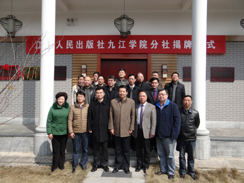 在热烈的掌声中,校党委书记郑翔,校长甘筱青,江西省出版集团公司副总经理、中文传媒股份有限公司总经理傅伟中,九江市文化广电新闻出版局局长柯亨龙共同为学院分社揭牌。江西人民出版社九江学院分社正式宣告成立。