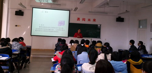 课上,王玉勤老师通过生动有趣的举例,深入浅出的介绍了“收入”、“费用”、“利润”这三个会计要素的含义、特点并且以问题带动学生思考,积极与学生互动。