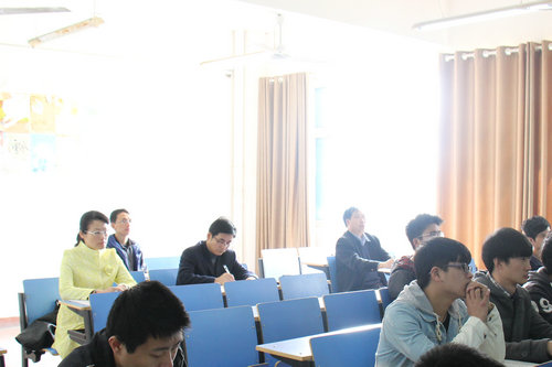 3月27日上午,校纪委书记魏立平来到竞知楼411教室,与机材学院A1261班的同学一起,听了宋杰光老师的“先进陶瓷材料”课程。机材学院党委书记燕红波、副院长王英惠一同听课。