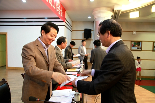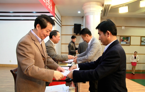 随后,会议还举行了党风政风特邀监察员聘任仪式。为充分发挥广大师生民主监督的作用,经各二级单位推荐、学校纪委审核和学校批准,决定聘请赵毅、张锋等十二位同志为学校党风政风特邀监察员。校领导为特邀监察员们一一颁发了聘书。