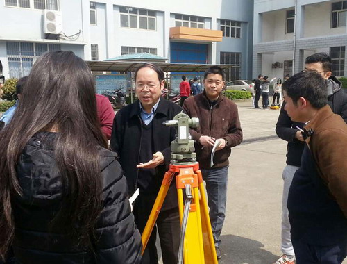 4月10日上午第四节课,纪岗昌副校长来到土木实验楼门前广场,与土建学院A1441班同学一起听取了杨乔老师的《工程测量》实验课程。土建学院赵兵副院长一同听课。