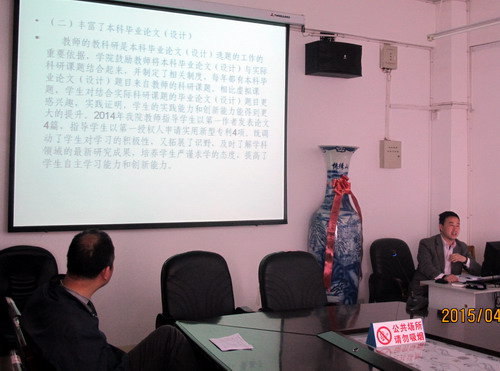 在认真听取了汇报后,陶副校长对化环学院前期所做的工作和取得的成绩表示充分肯定,并对做出重要指示,他强调:一是要树立信心,结合自身优势,在专利申报、学生获奖、“挑战杯”等方面多出成果;二是要整合力量,做好定位;三是要做好教科研成果的转化工作;四是要开辟好自己的专业特色。他希望化环学院一步一个脚印,扎实推进本科专业综合评价的各项工作。