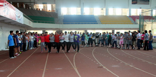 据统计,本次活动共吸引了24家分会450余名教职工参赛,从20多岁刚入职的年轻人到工作多年的业务骨干,从基层部门的教职员工到不少单位的党政领导,大家欢聚一堂,其乐融融,室内田径馆内人声鼎沸,盛况空前,体现了工会活动良好的群众性和广泛的覆盖面。为了办好此届教职工运动会,校工会精心组织,作了充分的准备,各分工会齐心协力,积极组织会员报名、训练,使本届教职工趣味运动会取得了圆满成功。