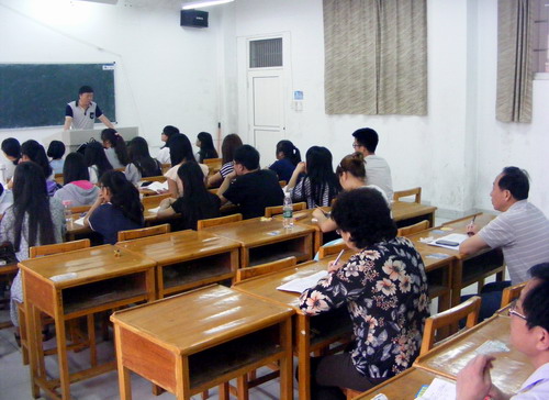 5月25日上午,吴桃娥副校长来到文友楼407课堂,与文传学院2014级汉语国际教育专业的同学们一起,听取由李向华博士讲授的汉语国际教育专业基础课《现代汉语》课程。文传学院院长冯敏强、副院长朱全国以及教务科负责人一同听课。