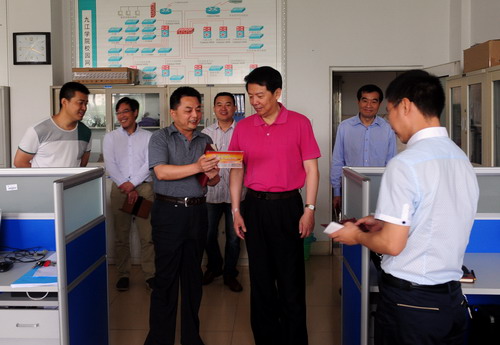 郑书记还参观了影视制作室、校园网网络机房、一卡通机房和数据中心机房,听取了机房相关工作介绍。当舒长兴指着6台高性能服务器向郑书记介绍说,它们可以虚拟成200多台虚拟机,既方便了管理,更为学校节省了大量经费时,郑书记饶有兴趣地询问:“信息技术中心到底管理多少设备资产”,他要求大家一定要管理好、使用好这些设备,加强应用开发,确保信息安全。