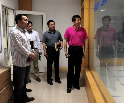 6月9日上午,校党委书记郑翔在党办主任刘遵海的陪同下到信息技术中心检查指导工作。郑书记对信息技术中心近期工作给予了肯定,对信息技术中心今后的建设发展进行了现场指导。信息技术中心副主任舒长兴向郑书记汇报了近期的工作,并陪同参观了中心网络数据中心、虚拟演播室、动漫设计室、录音工作室,以及新建完成的录播室等。