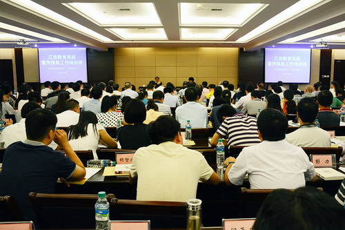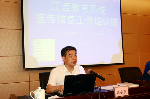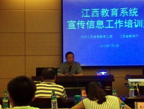 7月2日—3日,省教育厅在南昌航空大学举办全省教育系统新闻宣传工作培训班,集中培训全省高校宣传信息业务骨干,研究部署2015年全省高校宣传思想工作任务。省委教育工委书记黄小华出席并作《贯彻落实 落实中办〔2014〕59号和赣办〔2015〕1号文件精神  开创全省高校宣传思想工作新局面》专题讲座,省教育厅巡视员周金堂主持。全省高校分管宣传工作的校领导、党委宣传部长及宣传信息员,各设区市教育局、省直管县教育局宣传信息员,委厅机关各处室、直属各单位宣传信息员200余人参加。永利yl23411集团官网副校长杨耀防出席会议,党委宣传部副部长何桂林,党委宣传部文明办副主任吴彭年一同参加了本次培训活动。