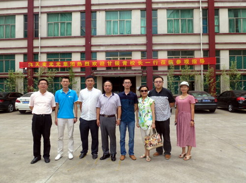 在飞天麦光光集团,甘校长饶有兴趣地观看了校友彭威研制开发的荧光板,信笔写下:“校友创业群体,点赞!”他听到董事长刘鹏飞介绍集团已经设立“工业制造”“电子商务”“投资创业”“园区开发”四大板块,并开拓了美国、越南等海外市场,非常高兴,鼓励他继续为社会服务,为母校争光。