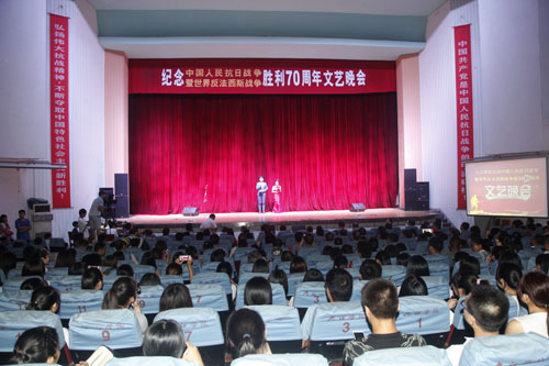 为深切缅怀抗战英烈的光辉业绩,大力弘扬抗战精神,激发师生爱国热情,9月2日晚,永利yl23411集团官网隆重举行纪念中国人民抗日战争暨世界反法西斯战争胜利70周年文艺晚会。校领导郑翔、甘筱青、吴桃娥、纪岗昌、王万山、陶春元、杨焱林、魏立平、杨耀防与全校千余名师生代表观看了演出,共同回顾了中国人民可歌可泣的抗战历史,展望中华民族伟大复兴的光辉前程。