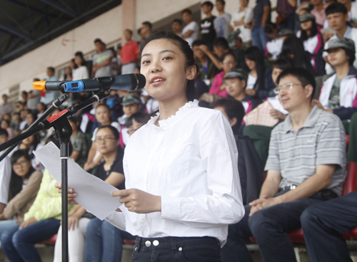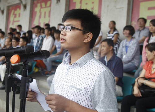 在开学典礼上,文传学院A1251班赵艺同学、基础医学院A1411班徐奖同学代表在校学生发言。他们首先代表全体在校学生对新同学表示热烈的欢迎和衷心的祝福。希望新生勇担责任、追求卓越、严于律己、学以致用,秉承九江学院“竞知向学,厚德笃行”的校训,热爱学校,在未来的大学生活中不断成就自我。