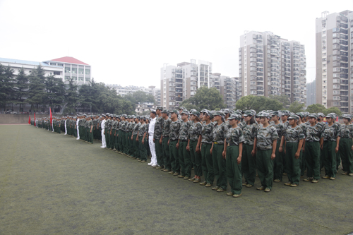 由于天气影响,瑟瑟秋风吹向严阵以待的迷彩队列,但各方阵依然整齐地列队在校园操场上。伴随着《义勇军进行曲》的庄严旋律,升国旗仪式拉开了军训总结表彰大会暨开学典礼的序幕,在雄壮的国歌声中五星红旗冉冉升起。