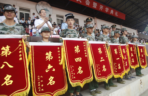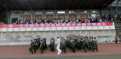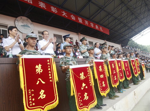 在同学们的热烈掌声中,2015级新生军训总结表彰大会暨开学典礼结束。至此,为期9天的军训圆满落下帷幕,也拉开了2015级新生新学期的序幕。在九江学院这片承载着梦想与希望的热土上,2015级新生一定能秉承“竞知向学,厚德笃行”的校训,迎接充满挑战和机遇的大学时代!
