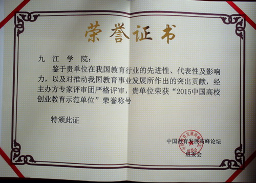 日前,中国教育发展高峰发展论坛组委会经过三个阶段的评选,评选出一批在中国教育发展进程中涌现出的先进单位和优秀个人,并予以表彰,永利yl23411集团官网榜上有名,喜获“2015中国高校创业教育示范单位”荣誉称号。