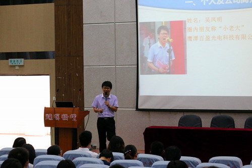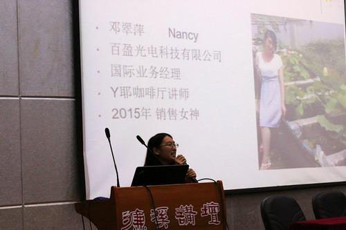 在阿里巴巴江西省总经理谭聪彦致辞后,鹰潭百盈光电总经理吴凤明为大家做了《我的电商之路》的精彩演讲,得到全场师生和企业代表的强烈反响。鹰潭百盈光电外贸经理邓翠萍为大家做了《我的外贸之路》的演讲,内容实战,操作性强。广东新航线跨境电子商务服务有限公司人力总监郭峰女士为大家分享了关于跨境电商人才培育方面的经验。
