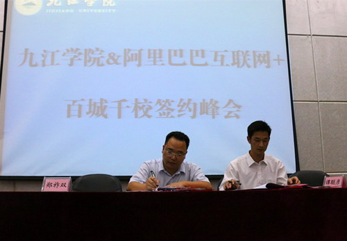 9月23日下午,电子商务学院举行与阿里巴巴“互联网+百城千校”合作签约峰会。王万山副校长出席仪式并讲话。阿里巴巴江西省总经理谭聪彦、鹰潭百盈光总经理吴凤明、阿里巴巴南昌区域经理陶光辉及九江市部分企业代表出席了签约仪式。电商学院全体教师和300余名毕业班学生参加了会议。