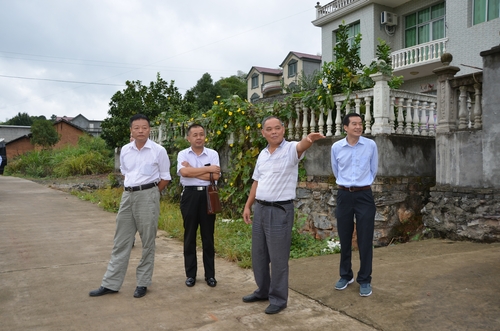 9月25日,副校长杨焱林、党办主任刘遵海、组织部副部长、村建扶贫工作组组长燕红波等一行冒着毛毛细雨,到永利yl23411集团官网村建扶贫点--武宁县官莲乡东山村调研。武宁县扶贫办及官莲乡政府有关领导陪同调研。