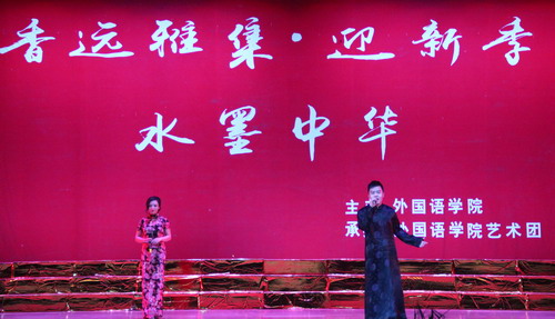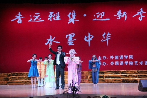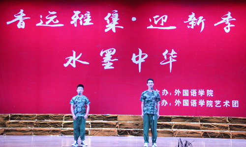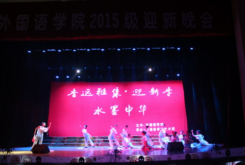 9月29日晚,外国语学院香远雅集“水墨中华”2015级迎新晚会在大礼堂隆重举行。副校长王万山、校团委负责人和外国语学院党政领导及师生代表千余人观看了本次演出。