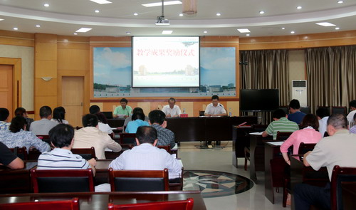 在听取获奖代表发言后,陶副校长指出,这些团队之所以能取得这样的成果,不是偶然的。他们的教学改革和教学研究方面有几个共同的特点:一是问题抓得准。在教学过程中,在教学质量提高的过程中,我们经常会碰到各种各样的问题。对一些重大的问题、一些全局性的问题要紧抓不放,我们教学改革才有可能立项,才可能获得明显的实效,才可能获奖。在进行教学改革的过程中,要抓住专业性的、带有突破性的、有典型意义的、有推广价值的问题进行深入研究。二是实效很明显。这次获奖的三项成果都取得了明显的成效,教学建设、教学改革的各项工作都扎扎实实地推进。无论是教学常规建设、教学规范管理、教育教学特色打造,各个层面的工作都扎实有效。三是研究做得深。研究深入的表现之一就是发表了不少教学研究论文。在教学研究的过程中,逐步明确了教改思路,逐步提炼了教育理念,逐步形成了自己的特色。