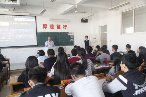 10月12日上午,甘筱青校长来到文友楼518教室,与艺术学院A1541、A1542、A1543班的同学们一起,听取了由虞正韬老师讲授的《设计概论》课程。教务处马明亮处长,艺术学院欧阳时来副院长陪同听课。
