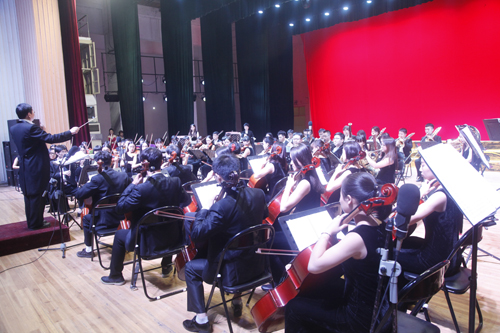 脍炙人口、南国风味十足的管弦乐《红色娘子军组曲》拉开了演出的序幕,《草原上升起不落的太阳》《在水一方》《在希望的田野上》等经典音乐节目轮番上演,逐一展现在观众面前。乐团富有技巧的演奏,赢得了在场师生的阵阵掌声。 演出在充满活力的管弦乐《卡门序曲》中落下帷幕。