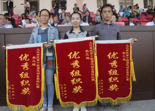 经过两天半紧张、激烈、精彩的角逐,在圆满完成了全部比赛项目后,10月17日上午,九江学院第十四届田径运动会在此起彼伏的欢腾声、呐喊声、助威声中胜利闭幕。在家校领导甘筱青、吴桃娥、纪岗昌、王万山、陶春元、杨焱林、魏立平、杨耀防出席了闭幕式并为获得精神文明奖、团体总分奖的单位颁奖。闭幕式由副校长王万山主持。