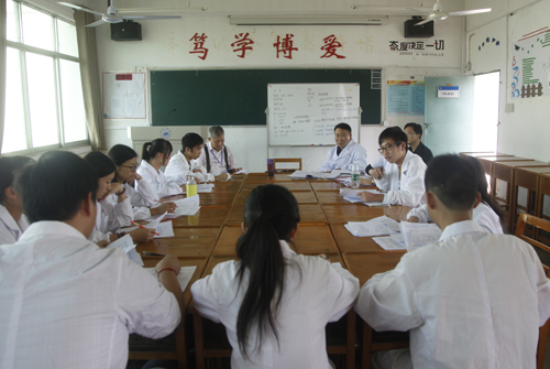 观摩教学和现场走访之后,教育部临床医学认证专家组成员重新组合并进行了工作分工:以闻德亮教授为组长的三位专家在浔东管委会三楼1号会议室组织召开“临床专业认证”基础医学院教师座谈会。座谈上,临床认证专家和老师们就临床医学教学改革、临床医学生科研能力的培养等方面进行深入交流,基础医学院教师踊跃发言、从容应答,给认证专家留下了良好的印象。
