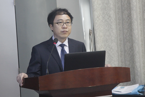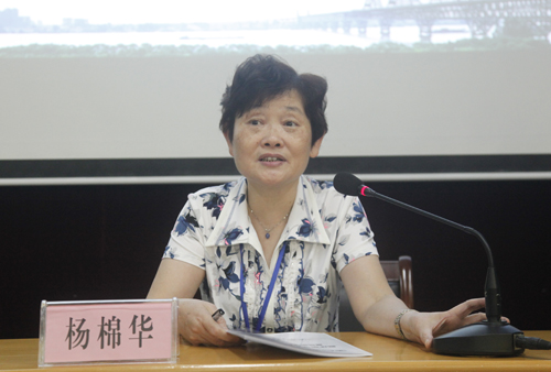 在浔东校区立本楼三楼报告厅,认证专家组副组长杨棉华教授主持基础医学院院长报告会,基础医学院党委书记余朝阳致欢迎辞。