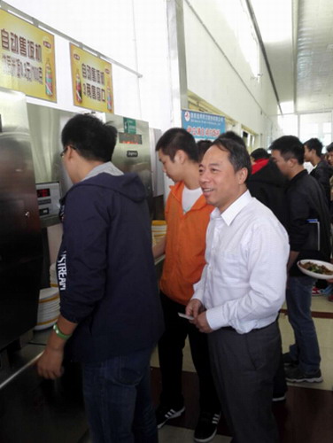 近期学校在二食堂和三食堂相继投入使用的自动打饭机科技含量足、定量精准、高效售卖大大节约了排队时间,被广大同学誉为“打饭神器”。甘校长饶有兴趣来到自动打饭机前进行参观,听取食堂经理的介绍后与学生一起排队刷卡体验。