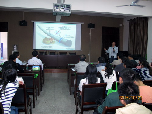 开幕式后,南昌大学环境与化学工程学院院长、博士生导师吴代赦教授和江西省环境监测中心站自动监测室副主任罗勇博士分别为老师、同学们做了《大气雾霾的形成与控制》和《南昌市环境空气PM2.5来源解析研究》的专题报告。吴代赦教授和罗勇博士以大量的数据、贴近生活的案例、生动详实的描述阐述了各自的主题,赢得了老师、同学们的阵阵掌声。