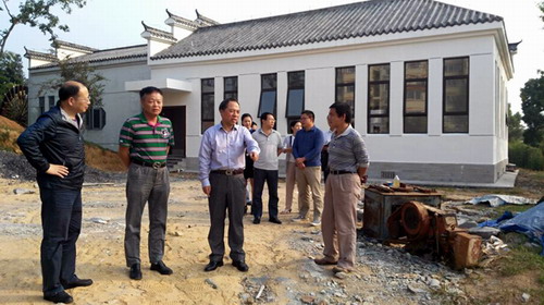 在两南山扩建工程现场,甘校长对工程完工后的效果表示满意,在听取庐山文化研究中心和基建处负责人的汇报和建议后,通过现场办公立即落实了工程后续的完善工作。