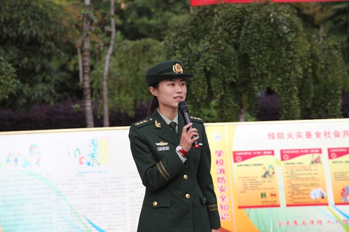 在第二十五个“119”消防宣传日的到来之际,11月4日下午,永利yl23411集团官网2015年119消防宣传月启动仪式在向学广场举行。校纪委书记魏立平、庐山区消防大队参谋邓雨欣,校保卫处、学生处、文传学院、理学院、会计学院、化环学院等部门负责人及学生代表约400余人参加了此次消防宣传及运用消防器材进行灭火的演练活动。