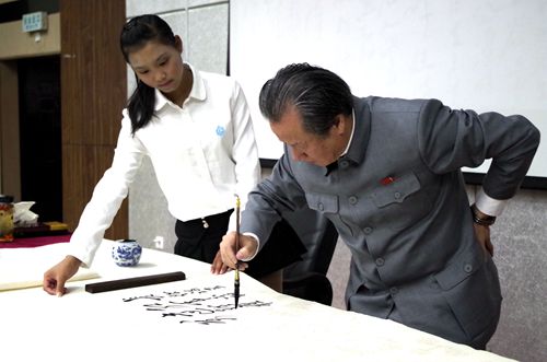 为深入推进“四进四信”活动,贯彻落实一二七计划,11月6日晚,中国毛体书法艺术家协会主席梅楚安做客永利yl23411集团官网“与信仰对话”专题讲堂,在文友楼报告厅带来题为“毛泽东经典诗词与书法解读”的精彩讲座。讲座前,副校长吴桃娥接见了梅楚安主席。学生处、校团委负责同志及学生代表500余人参加了讲座,讲座由校团委书记闫来英主持。