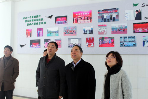 甘校长还到外国语学院教室,饶有兴致地观看教室的文化墙,赞许将创业创新教育、好习惯养成、国学素养教育有机融合,形成一种校园文化导向的做法,提议有条件要推广。