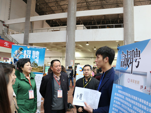贾桂业副主任与前来应聘的大学生交流