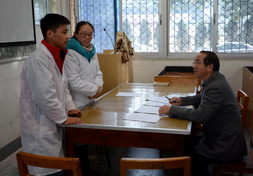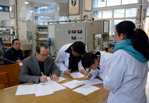 陶副校长对化工原理、物理化学、环境微生物等实验室的实验开展情况进行了现场调研。并观摩了曾湘晖老师承担A1341班的化工原理实验课的操作考试。陶副校长仔细了解了实验考试内容设置和考试安排情况,察看参考学生的操作过程和数据处理,询问考试结束学生对平时实验教学和考试的体会和意见。