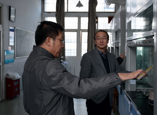 调研过程中,严平院长及曹小华副院长向陶副校长汇报了化环学院实验教学和实验室建设的情况。陶副校长对化环学院重视日常的实验教学和考试把关,扎实开展毕业生实验技能综合考试工作予以了充分肯定,并详细询问了化环学院2015年实验室建设项目和江西省生态化工工程技术研究中心进展情况,现场察看了今年新改造完成的有机化学、无菌室等实验室。陶副校长强调要高标准落实实验室建设项目,积极推进和加速江西省生态化工工程技术研究中心的建设工作。