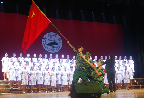 12月9日晚,永利yl23411集团官网大礼堂歌声嘹亮,座无虚席,以“同抒九院情,共筑中国梦”为主题的纪念“一二·九”运动80周年合唱比赛暨国学经典诵读表演在这里隆重上演。来自全校十余个学院的代表队在这里以歌唱、诵读的形式铭记历史,品味经典。校领导郑翔、纪岗昌、王万山、魏立平、杨耀防与千余名师生代表共同观看了演出。