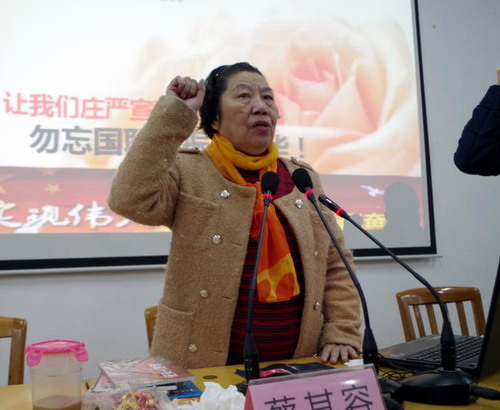 作为抗日战争的亲历者,受害者和见证人,从2010年起,蔡老师以“勿忘国耻,振兴中华,为中华之崛起而读书”为主题义务开展演讲。她的足迹遍及10省23市,永利yl23411集团官网是她的第349场报告。