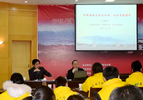 12月27日,由国务院侨务办公室主办,江西省外事侨务办公室承办,九江学院协办的2015海外华裔青少年“中国寻根之旅”冬令营——庐山冰雪营在九江正式开营。来自澳大利亚、南非和印尼的64名海外华裔青少年参加了此次冬令营。江西省外侨办巡视员吴健民、江西省外侨办侨务处副处长陈智青、九江市外侨办副主任胡丽华、九江学院校长甘筱青、九江学院副校长杨耀防及九江学院国际合作交流处副处长王贤淼出席开营仪式。