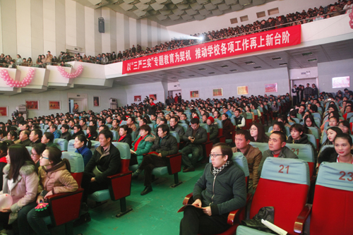 甘筱青校长发表了热情洋溢的新年致辞。甘筱青校长代表学校党政领导,向全体教职员工和莘莘学子致以新年的祝福,向广大离退休老同志致以亲切的慰问,向关心支持学校事业发展的海内外和社会各界人士致以崇高的敬意和衷心的感谢。在致辞中,他全面回顾了2015年党和国家各项事业取得的重大成就,回顾了学校教育教学、学科建设、人才培养、教学改革、社会服务、后勤服务等各项事业取得的成绩,勉励大家在新的一年里,进一步深化体制机制改革,深入推进特色教育,全面提升服务地方经济社会发展水平,为把九江学院建成特色鲜明的地方本科院校而努力奋斗。