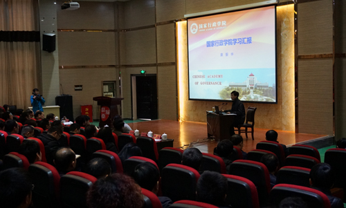会上,组织人事部部长查振华从“基本情况、精彩课程、学习体会”三个方面介绍了他在国家行政学院学习一年的情况。