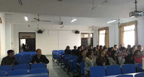 2月29日上午,纪岗昌副校长来到竞秀楼107教室,听取了艺术学院吕彪老师讲述的《艺术概论》课程。艺术学院欧阳时来副院长及教务科老师一起陪同听课。