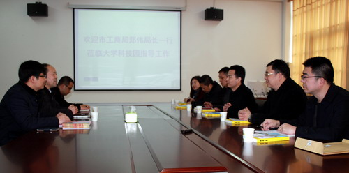 3月11日上午,九江市工商局党组书记、局长郑伟率领该局党组成员、纪检组长邹常斌,企业注册局局长陈建平,企业监管局局长汤建东,企业注册局副局长任小康,个体科科长刘建龙一行到永利yl23411集团官网省级大学科技园参观调研。副校长纪岗昌热情在大学科技园会议室会见了郑局长一行。科研处副处长宋士华、大学科技园全体工作人员陪同。