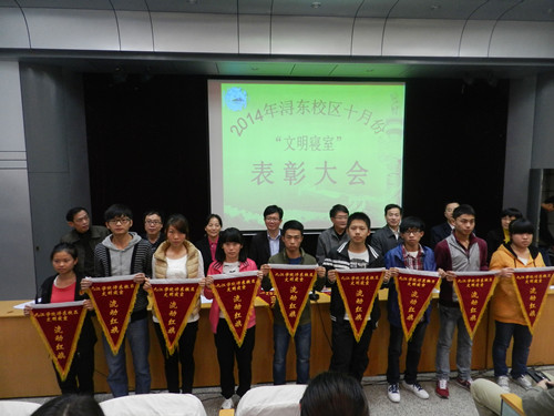 三是大力推进宿舍管理工作,营造文明温馨的宿舍环境。学生宿舍是同学们在校生活的“家”。为了使同学们在“家”生活的舒适、舒心,浔东校区在每年新生入校军训完后开展“寝室设计大赛”活动。这项活动浔东校区已连续开展了十二届,让刚进校住在同一寝室的同学们齐心协力、团结互助、一起动手布置设计自己在校生活的“家”。为了规范同学们平时在“家”好习惯的养成。浔东校区管理办还在驻校区二级学院大力支持下,制定了《浔东校区“文明寝室”流动红旗评比方案》。该活动以浔东宿管科每周对学生寝室的检查结果为依据,一月一评,对评分在前35名的寝室进行表彰,颁发“文明寝室”流动红旗,同时二级学院对受表彰寝室的每位学生加技能分以资鼓励。这一系列的举措,推动了同学们好习惯的养成,增强了大家的凝聚力和荣誉感。