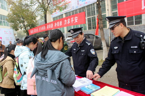 魏书记在活动启动仪式上做了动员讲话。他指出,举办综治工作主题宣传活动,旨在广泛动员师生积极参与校园综合治理,在校园营造“综治工作人人有责,和谐校园人人共享”的浓厚氛围,进而聚全校之力,共同推进平安校园建设。近年来,学校在上级综治委的具体指导下,全校师生员工共同参与、齐抓共管,全面落实社会治安综合治理各项措施,大力推进校园综合治理工作,基本实现了学校提出的“三一三就”的工作目标,确保了校园的安全稳定,为学校的各项事业的发展提供了坚定的保障。魏书记强调,综治工作是一项长期性工作,只有进行时,没有完成时。今后,我们要继续在加强法制宣传和教育工作、加强不稳定因素和矛盾纠纷的排查调处、加强安全防范工作、大力提倡群防群治等四个方面不懈努力,切实携起手来,齐抓共管,用大家的智慧和努力创建平安校园,建设和谐校园。