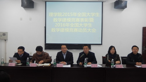 为进一步推进数学建模竞赛、培训工作,提升永利yl23411集团官网参加全国大学生数学建模竞赛水平,3月30日下午,理学院在文友楼312召开了2015年全国大学生数学建模竞赛表彰暨2016年全国大学生数学建模竞赛动员大会,副校长陶春元出席会议并讲话,理学院党政领导、数学建模全体指导教师、数学建模协会主要学生干部、2015年参加全国大学生数学建模竞赛获奖学生及有意向参加2016年全国大学生数学建模竞赛的同学参加了会议,会议由理学院院长周金贵主持。